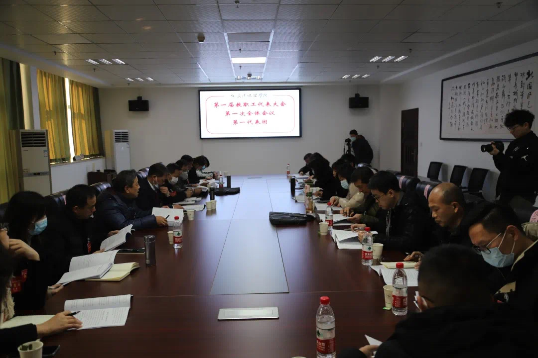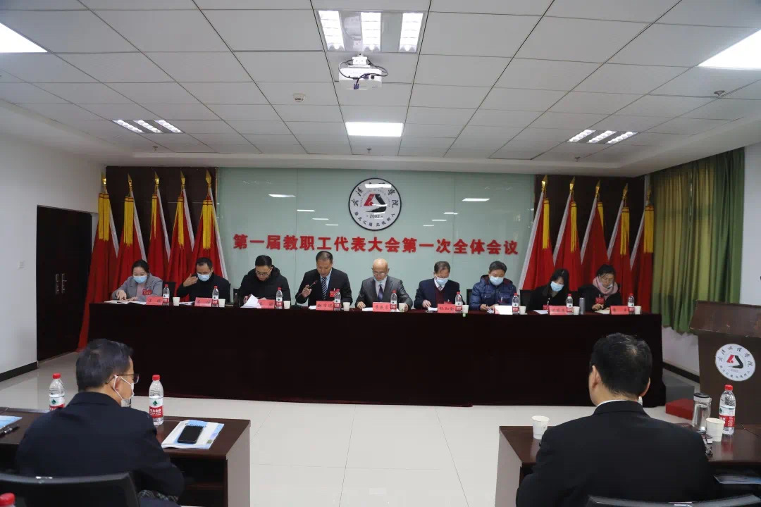 2020年12月19日,历经数月筹备,全讯800cc大白菜隆重召开了第一届教职工代表大会第一次全体会议。出席会议的领导有董事长袁戴名、校长刘可风、党委书记杨知勤、副校长夏勇、党委副书记赵学迅等以及各学院各部门选出的参会代表共63名。