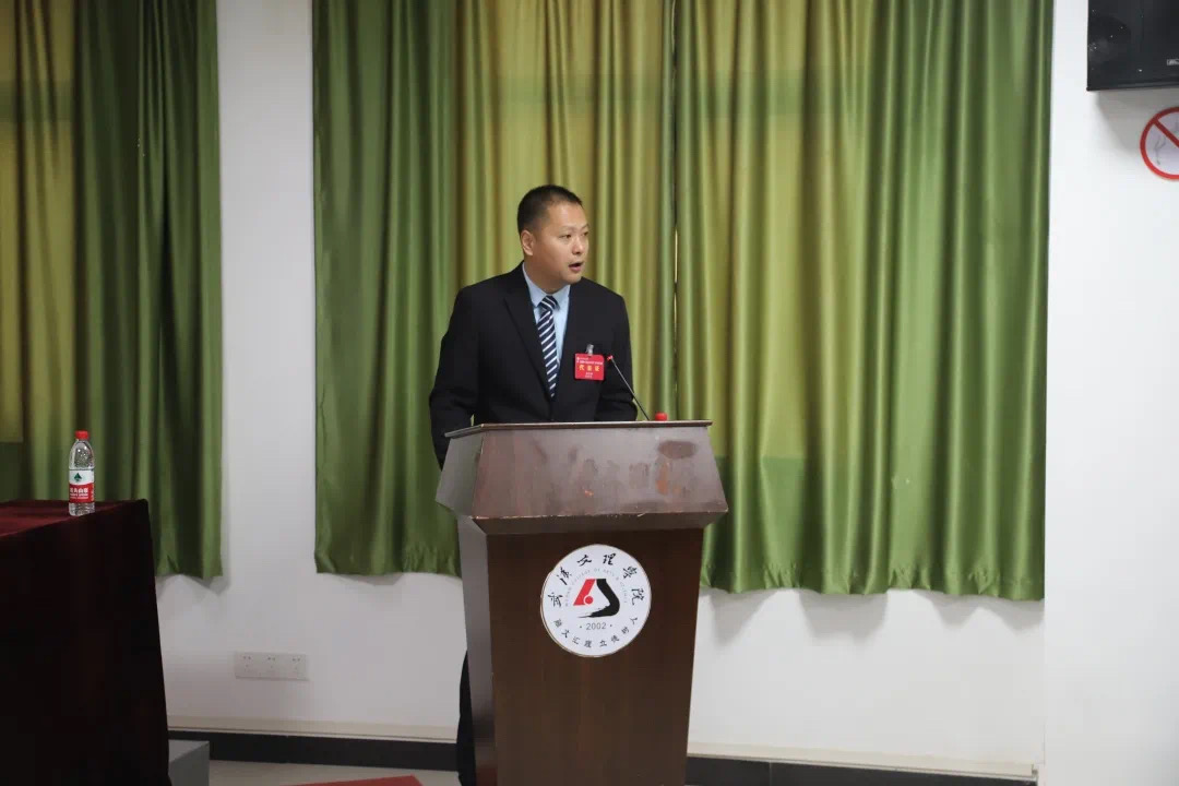 在会上,董事长袁戴名发表了重要讲话,他指出,学校第一届教职工代表大会第一次全体会议是学校转设更名后全体教职工政治生活中的一件大事。这是一场总结经验、明确目标、坚定信心、继往开来的大会,也是团结动员全校教职工共谋学校发展大计、同绘学校发展蓝图的盛会。