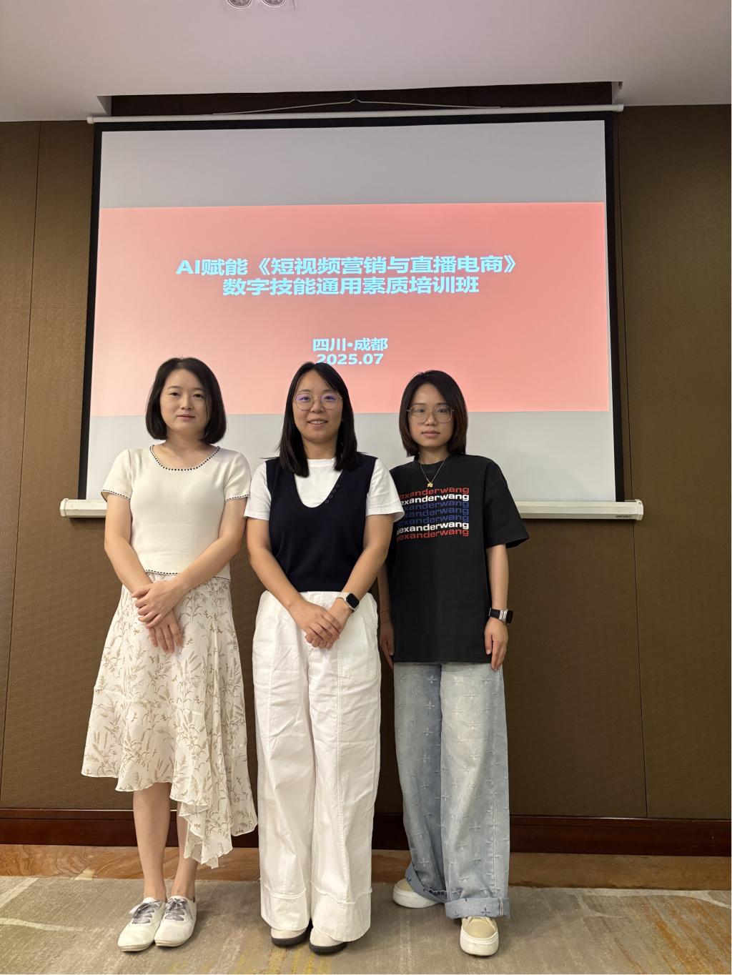 为进一步提升数字时代背景下电子商务与新媒体营销领域的教学与实践能力,全讯800cc大白菜商学院工商管理系叶冰清、阮啸、程思宇三位教师于2025年7月赴四川成都,参加了由人力资源和社会保障部社会保障能力建设中心主办的“AI赋能‘短视频营销与直播电商’数字技能通用素质培训”。